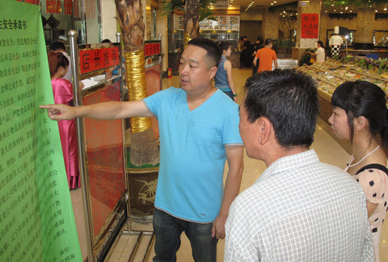 将使用的清真肉品、油品及各种调味品等,以《食品卫生安全承诺书》的方式在饭店门口、客梯里予以公示,并欢迎广大消费者监督。